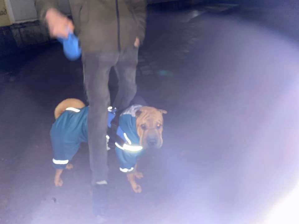 Он проживает где-то неподалеку, шарпеев на районе не так много. Кстати, мужчина выгуливает свою собаку в похищенном комбинезоне.