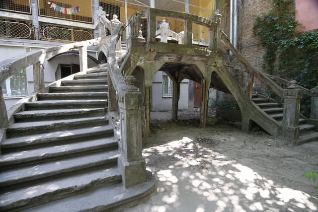 Главная архитектурная особенность дома – его лестница. Она популярна среди любителей фотосессий. Лестница состоит из двух ярусов, нижний имеет два марша полукруглой формы.