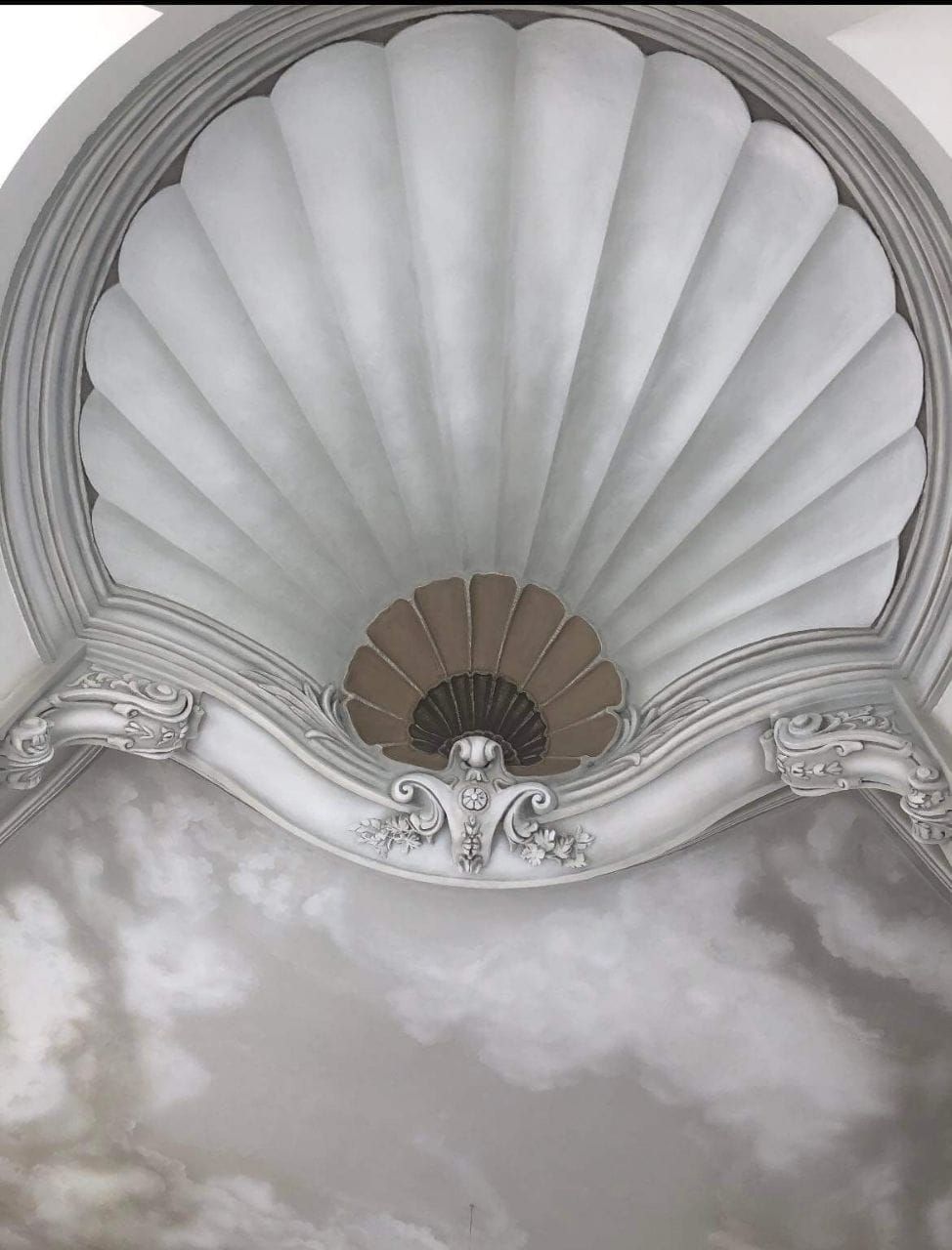 В помещении высокие потолки, на которых была декоративная лепнина.