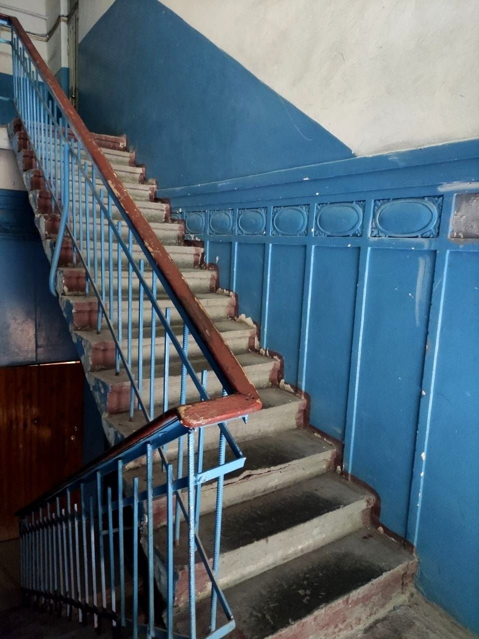 А вот коридор с лестницей довольно маленький. До наших дней старинные перила и ограда не «дожили», но сделана она добротно, из цемента, а не железа, как лестницы в других старинных домах города.