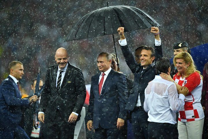 Второй курьез произошел на награждении. Во время церемонии начался ливень. Над президентом РФ охрана тут же открыла зонт, а вот президенты Франции, Хорватии и Международной федерации футбола (ФИФА) еще несколько минут мокли под дождем.