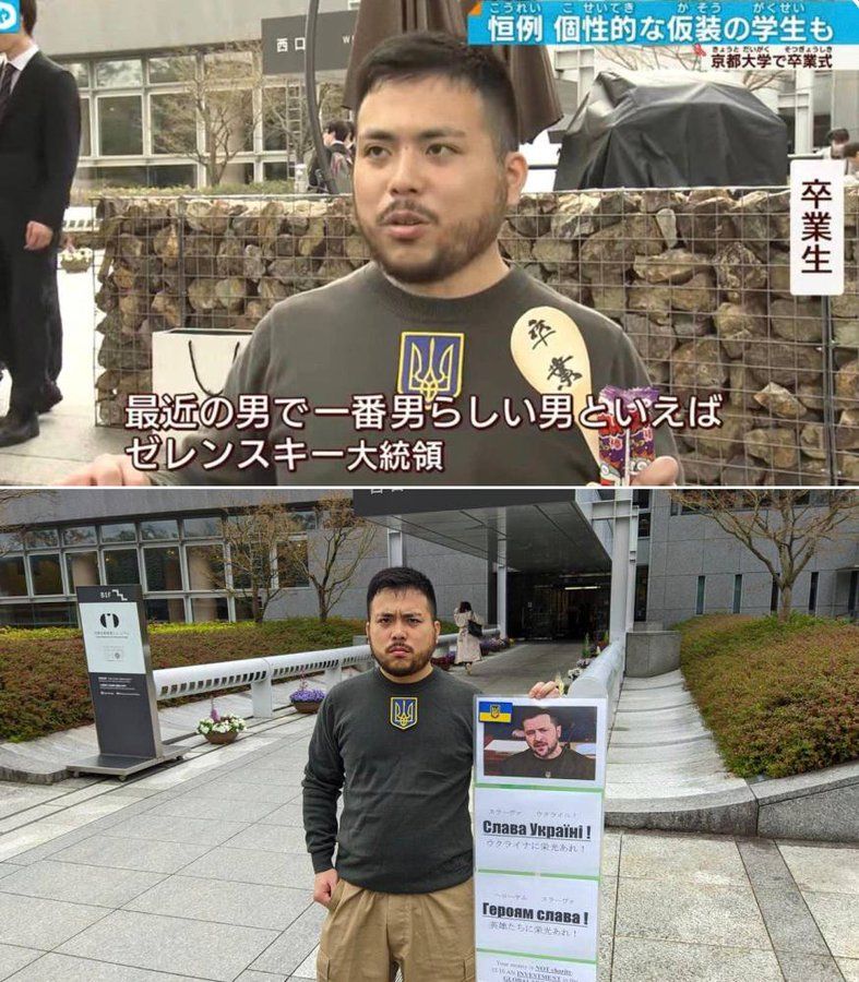 В Японии студент Киотского университета пришел на церемонию вручения дипломов в образе президента Зеленского.