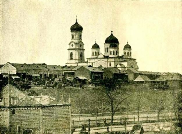 Находясь в самом центре города можно увидеть купола Троицкой церкви. Но еще 100 лет назад рассмотреть ее с площади Героев Майдана можно было намного лучше.