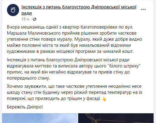 "Пані" свободна: в Днепре хозяин квартиры снял латочное утепление на мурале