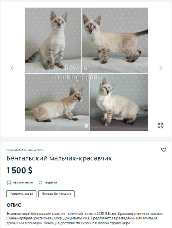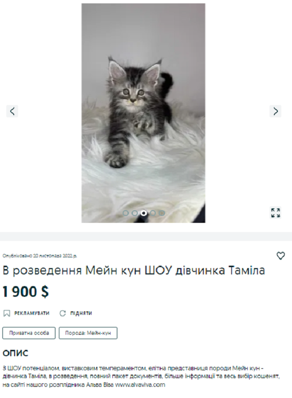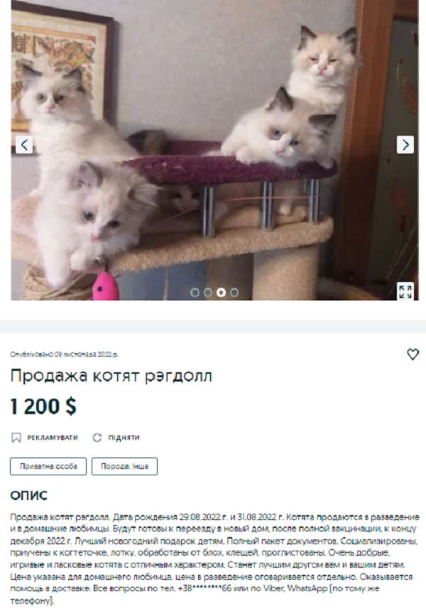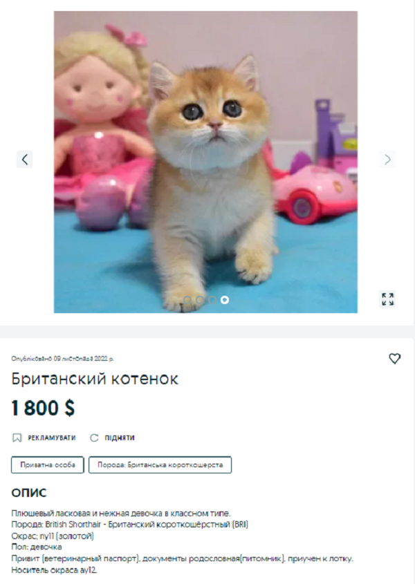 Цены на породистых котят в Днепре могут доходить до нескольких десятков тысяч гривен. На эти деньги можно купить старое авто, несколько месяцев снимать довольно привычную квартиру или купить коптер для армии.