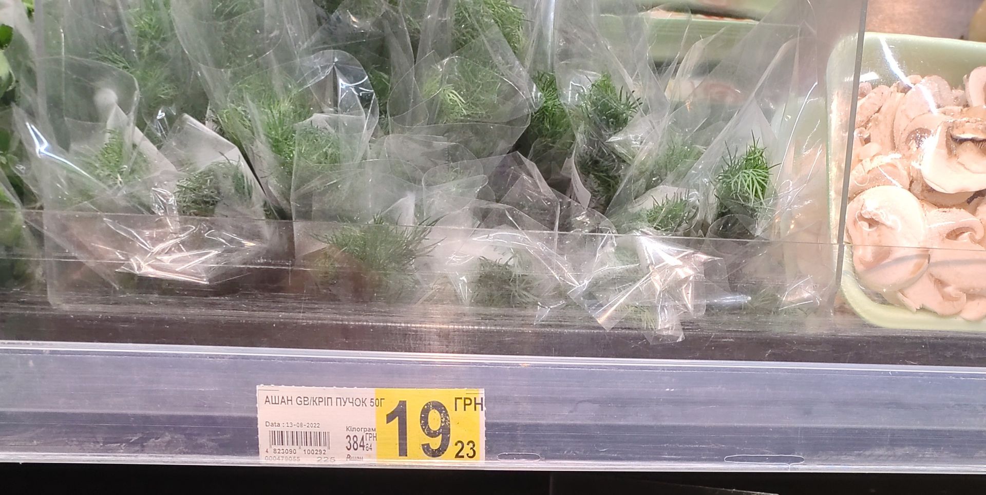 В сети «Ашан» для того, чтобы не шокировать покупателей ценами «траву» расфасовали в упаковки по 50 грамм и просят за них 19,2 грн.