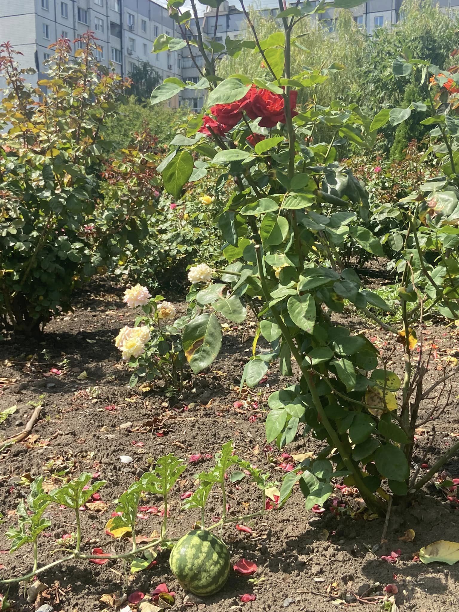 В мае между молодыми розами в сквере я посеяла Херсонские арбузы. И сегодня первый я попробовала. Он очень вкусен. На подходе еще десяток, - хвастается Светлана.