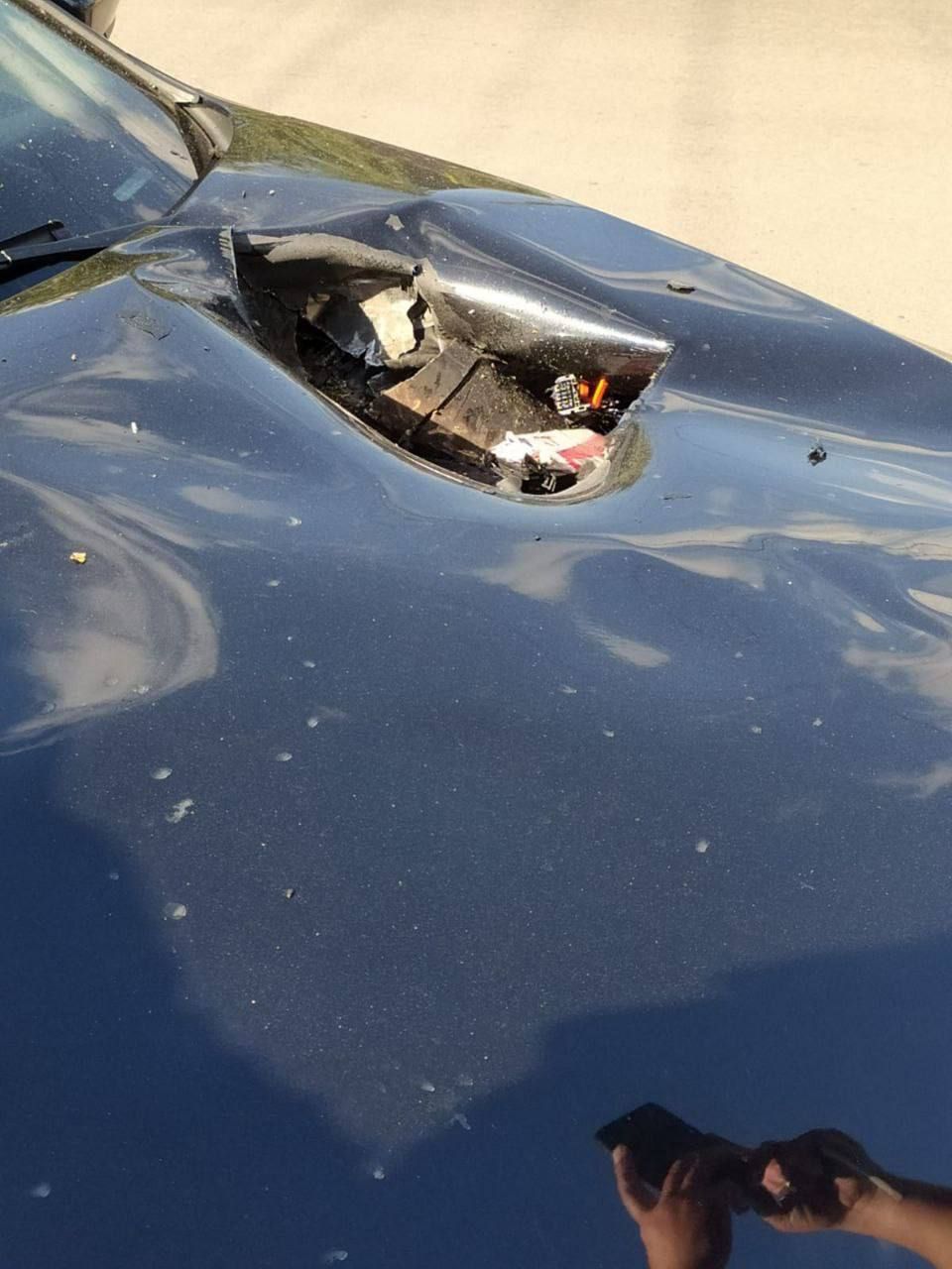 Одному автовладельцу тоже не повезло - обломок от вражеской ракеты пробил капот его машины.