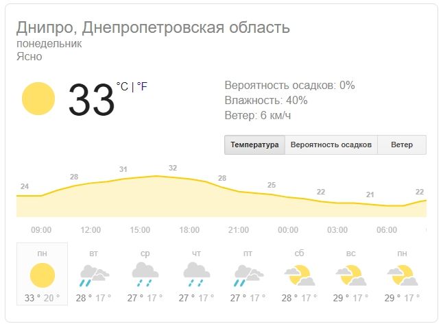 Погода на 22 июля: в Днепр возвращается жара