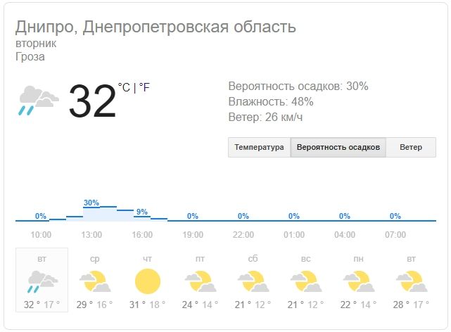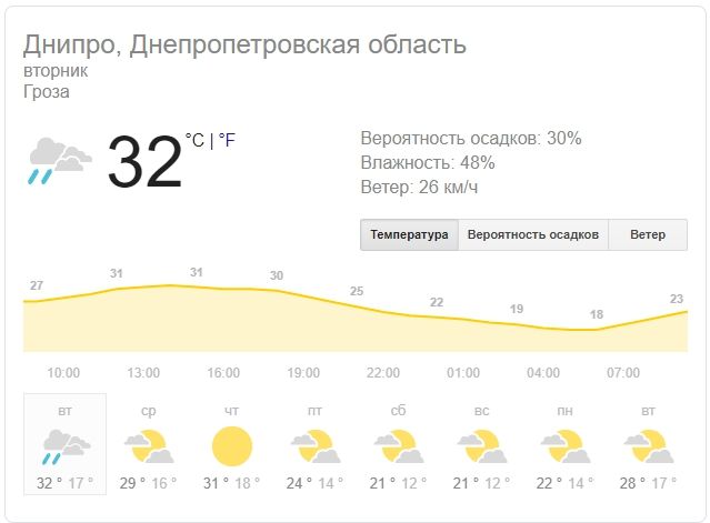 Погода в Днепре 25 июня: жара и дожди