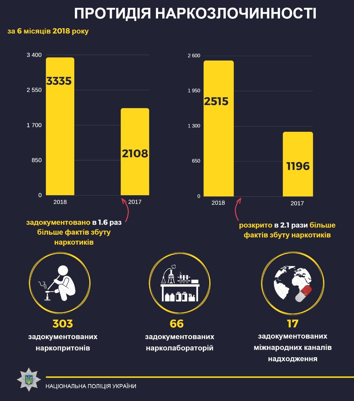 «К уголовной ответственности привлечено 1,2 тысячи наркосбытчиков. Это на 31% больше, чем за аналогичный период в 2017 году (1156 против 882). Также ликвидирована деятельность 79 групп распространения наркотиков с использованием сети Интернет», - сообщил Андрей Кихтенко.