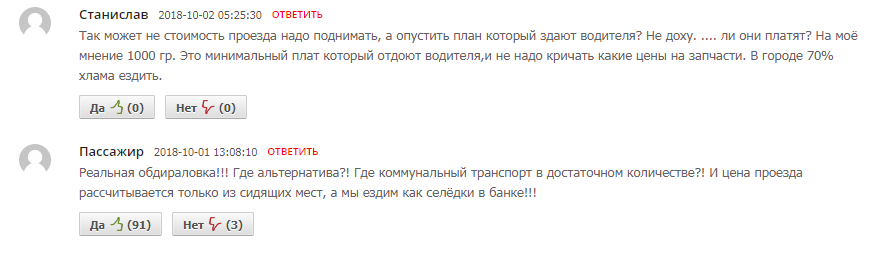 - Что при поднятии цен на бензин - цена на проезд была повышена. Как цена на топливо упала - никто проезд не понижал.