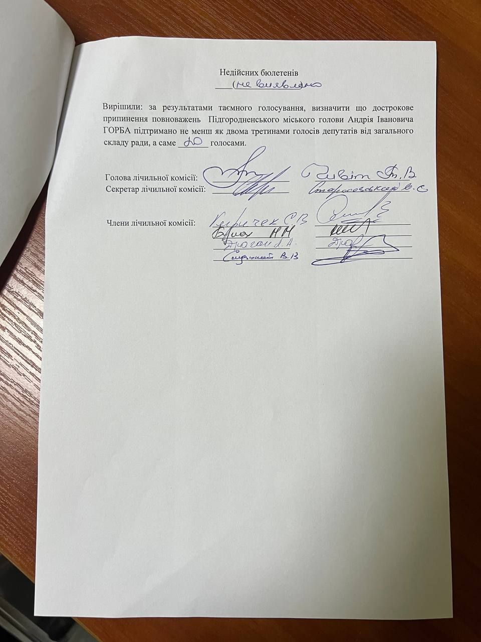 Таким образом, Андрея Горба отстранили от занимаемой должности 20 голосами "ЗА". В общей сложности совет состоит из 25 депутатов.