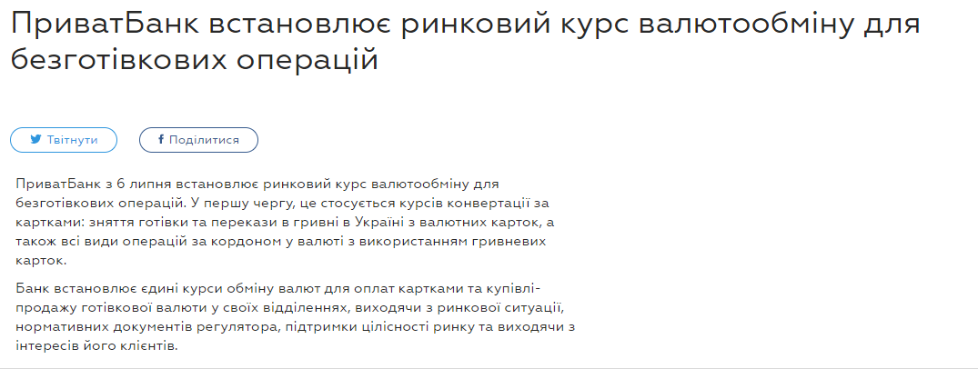 Это касается курсов конвертации по картам: снятие наличных и переводы в гривне в Украине с валютных карт, а также все виды операций за рубежом в валюте с использованием гривневых карт.