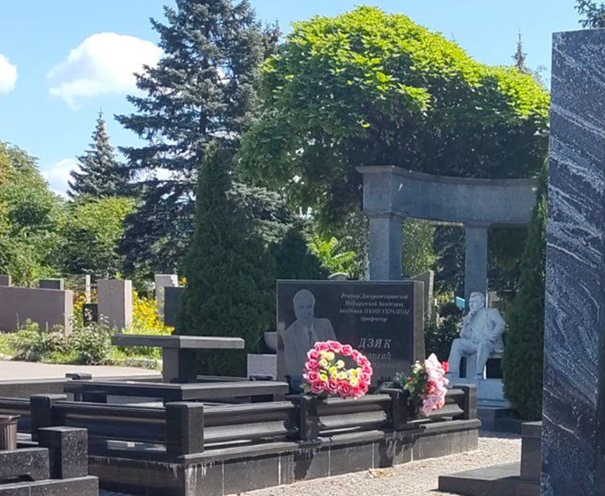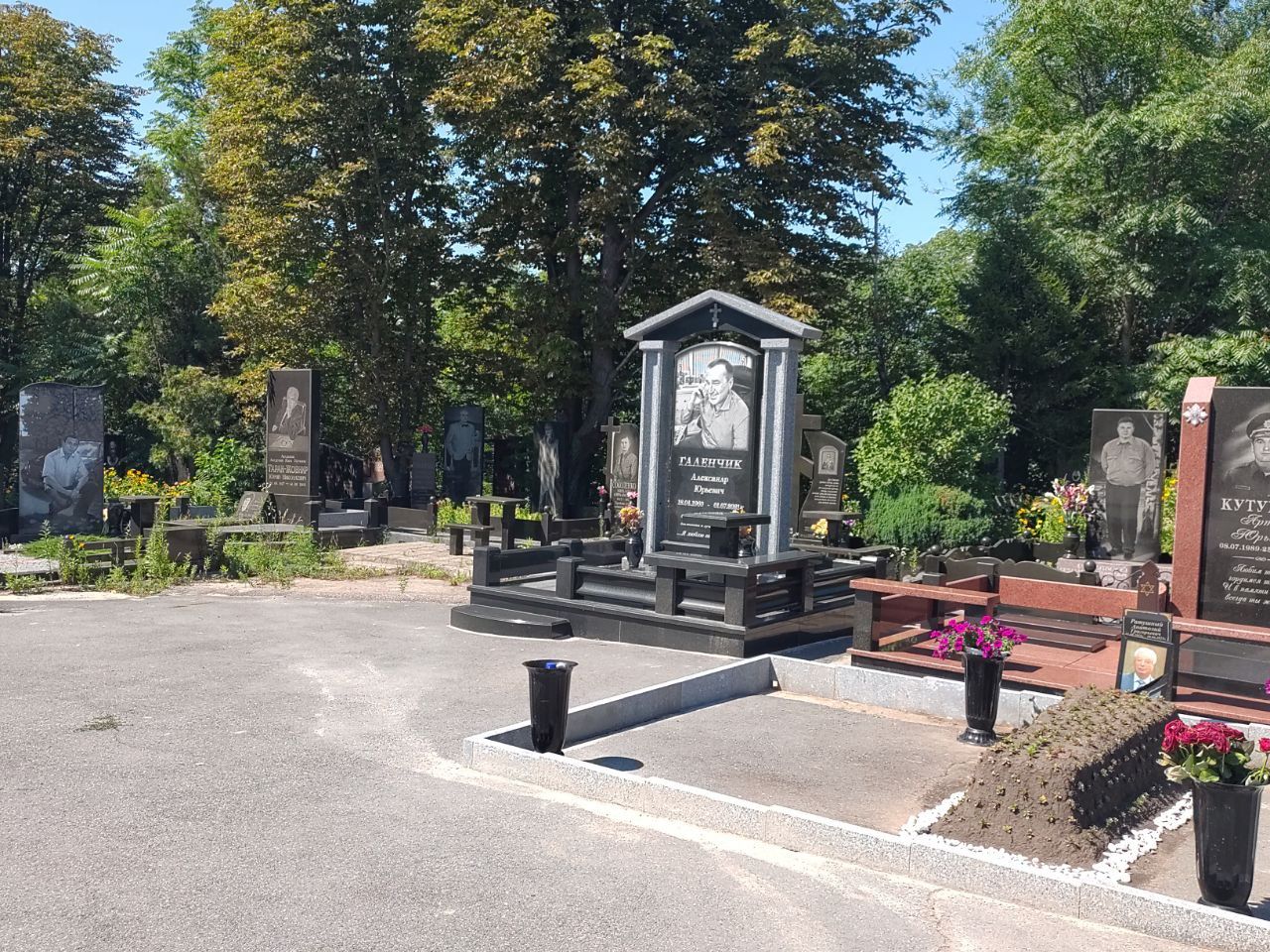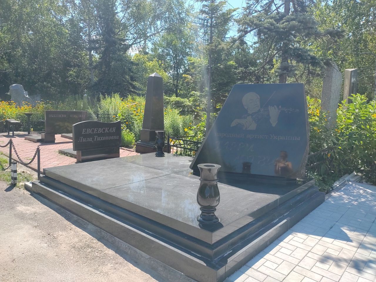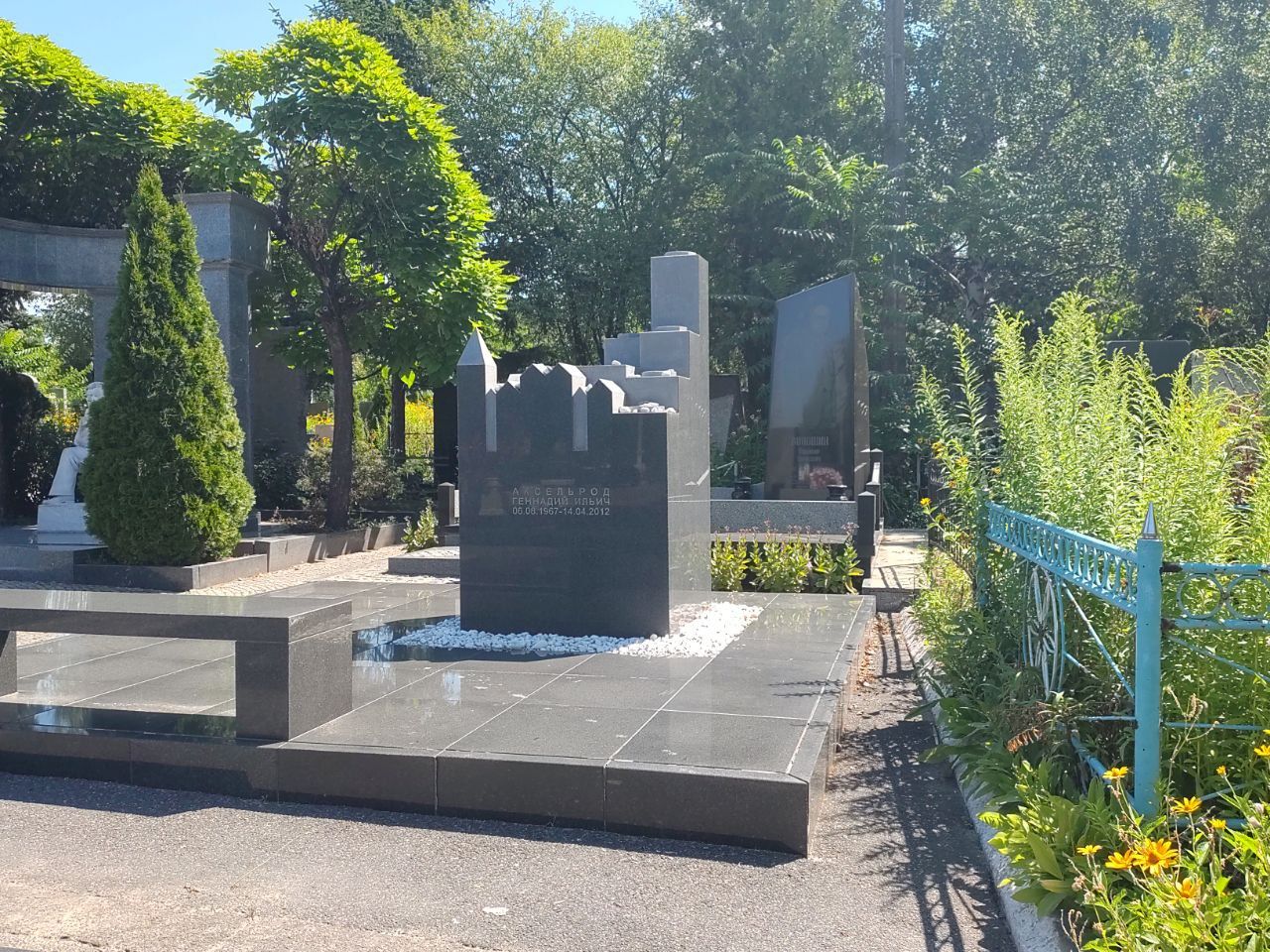 У центрального входа на Сурско-Литовском кладбище похоронены бизнесмен Геннадий Аксельрод, застреленный в центре Днепра в 2012 году.