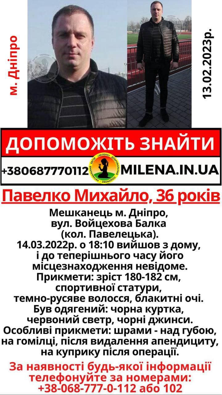 В Днепре уже почти год разыскивают 36-летнего Павелко Михаила Андреевича.