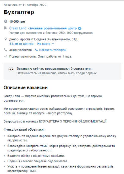 10 тыс грн в Днепре может заработать за месяц бухгалтер, который будет заниматься контролем и ведением первичного документоборота, сверять расчеты, контролировать дебиторскую и кредиторскую задолженность, а также проводить кассовые операции предприятия и участвовать в инвентаризации. От соискателя требуется соответствующее образование, опыт работы, знание 1С.