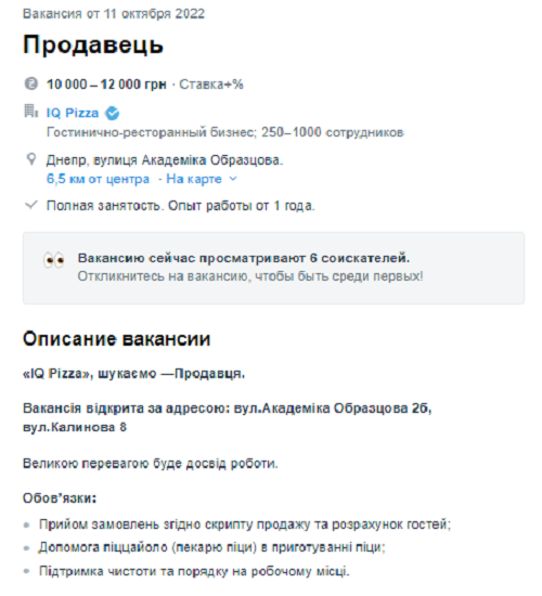 Аналогичную зарплату может получать продавец, который будет не только рассчитывать клиентов за товар (в данной вакансии – это прием заказов на приготовление еды) но поддерживать чистоту на рабочем месте.