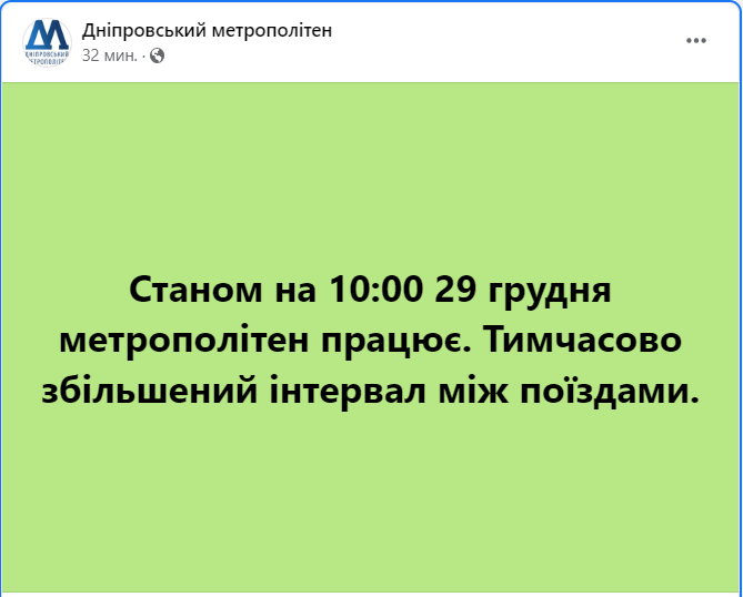 Но по состоянию на 10.00 29 декабря метро продолжает свою работу.