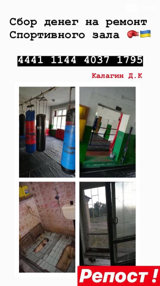 Спортзал расположен в микрорайоне Полигон (здание музыкальной школы, 1 этаж). Для того, чтобы с комфортом заниматься в зале, Дмитрий начал самостоятельно собирать деньги на ремонт. Стоит отметить, что поддержать мужчину нашлось много неравнодушных: чтобы мечта Дмитрия сбылась, всего за 2 недели получилось собрать сумму более чем 19000 гривен.