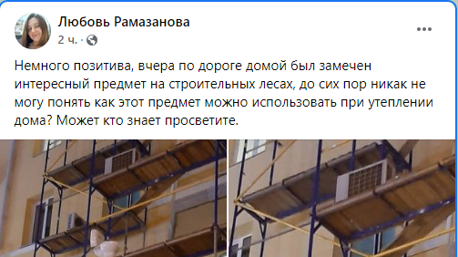 На углу улиц Калиновой и проспекта Слобожанский заметили уличный туалет. На строительных лесах оставили унитаз. Стоит он между вторым и третьим этажом. Днепрянка Любовь Рамазанова спрашивает, можно ли такой предмет использовать при утеплении дома.