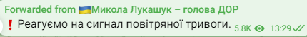 Реагируем на сигнал воздушной тревоги, – написал он.