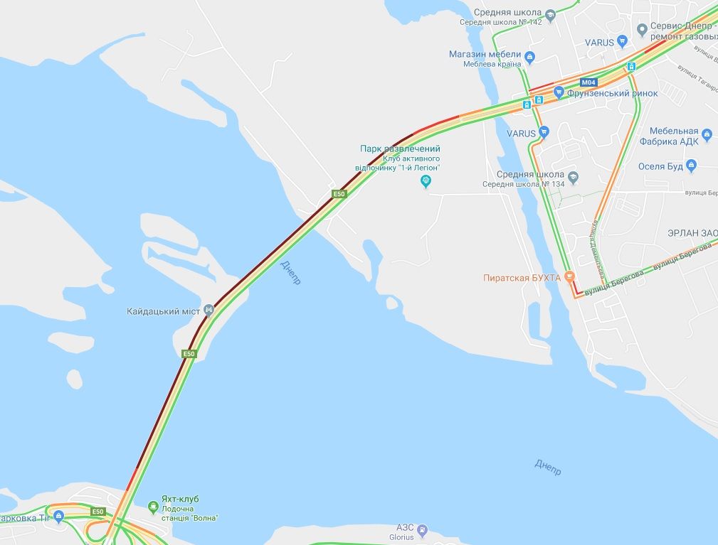 Сегодня утром, 22 марта, автомобилистов Днепра ожидал «сюрприз». На Кайдакском мосту коммунальные службы начали проводить работы по укладке асфальта, из-за чего в направлении правого берега образовался огромный затор.