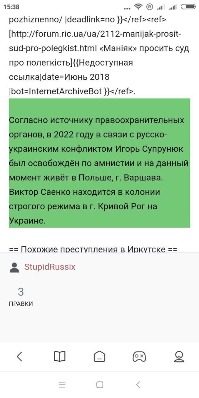 Так, деякі правки він видаляє як неправдиві, зокрема, інформацію про те, що Супрунюк звільнений через масштабне військове вторгнення та нині знаходиться на території Польщі. Це не може бути правдою, адже згідно законодавства йому присуджене довічне ув’язнення. Він не може бути амністованим, а тільки помилуваним Президентом.