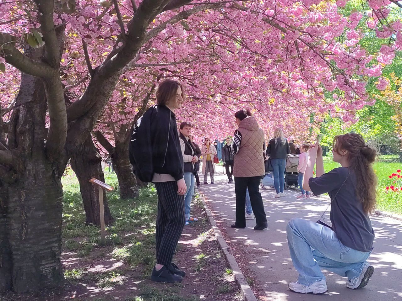 Розовое облако цветов и вытоптанная трава вокруг: как выглядит аллея сакур в ДИИТе (ФОТО)