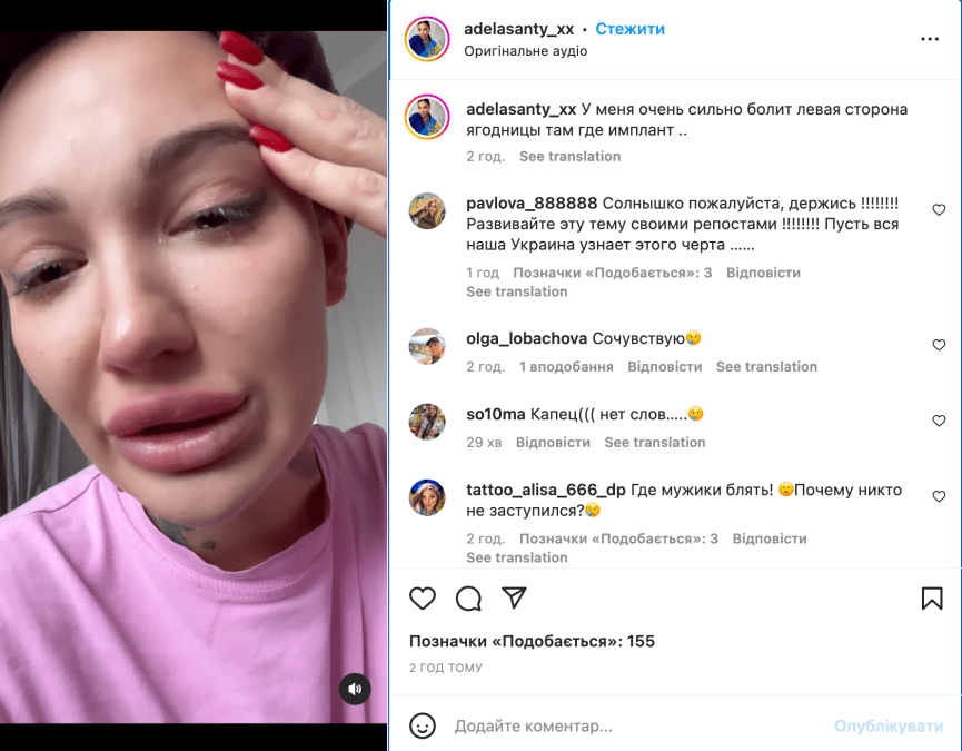 У меня очень болит левая сторона, там, где у меня имплант. Я действительно волнуюсь, что там может что-то нарушиться, потому что удар был сильным. Скажите, за что? Это за то, что я создала свой БФ и делала собрание, всегда помогаю ВСУ? Это мне благодарность? – отметила Адель.