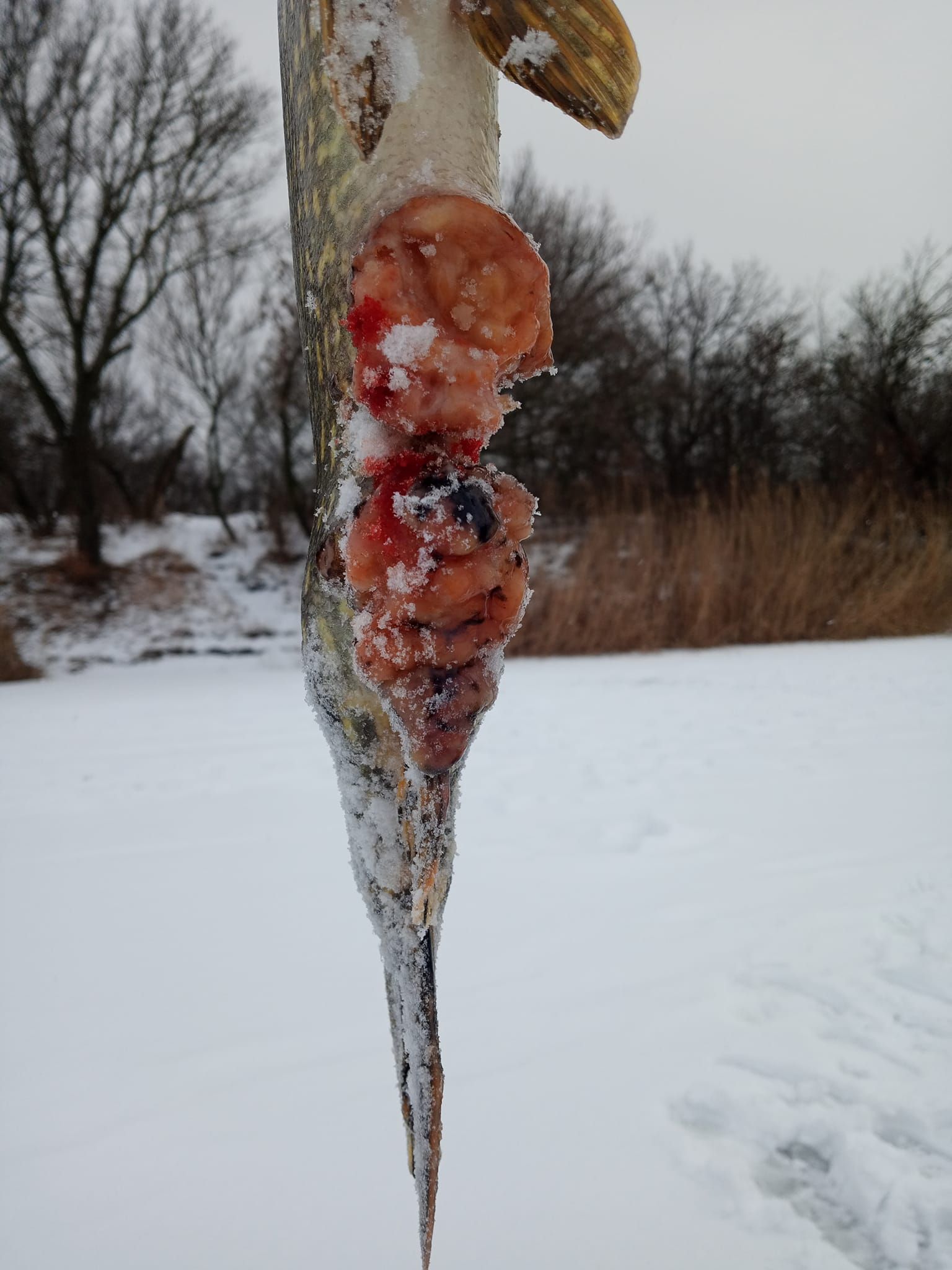 В Днепропетровской области на реке Волчьей недалеко от Павлограда рыбаки выловили больную щуку.