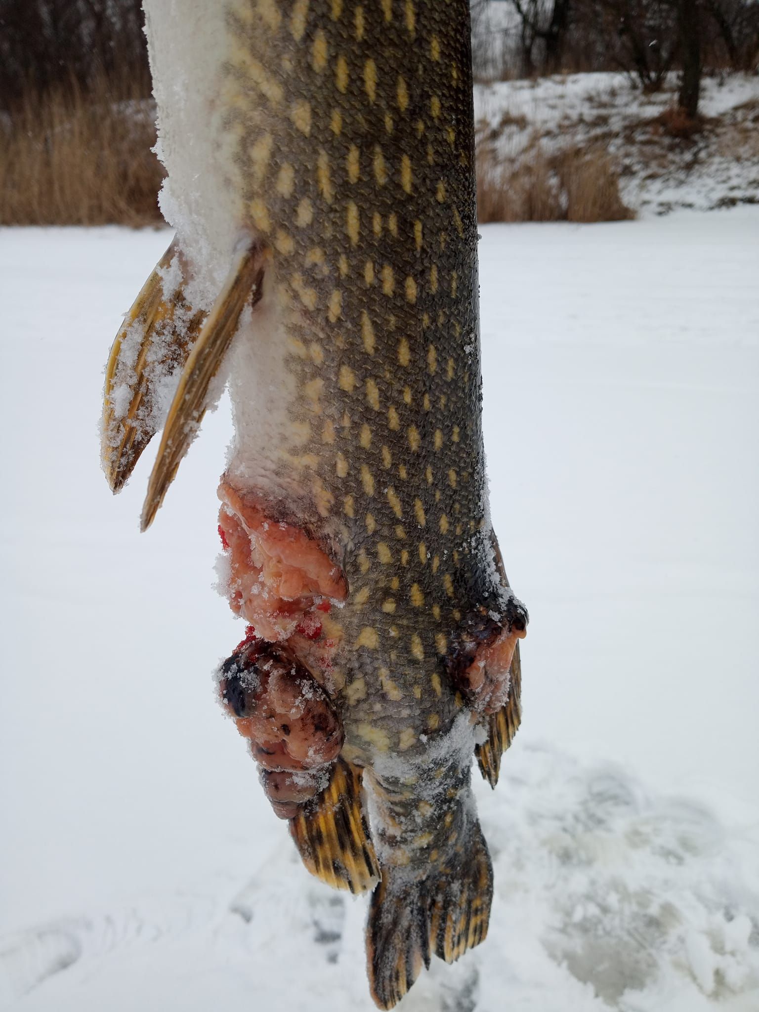 На рыбе были различные наросты и раны, которые явно указывали на то, что у нее заболевание «щучья чума».