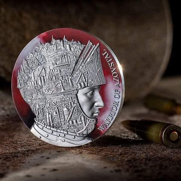 На монете изображён воин Азовстали в средневековых доспехах. Шлем будто "создан" с металлургического завода, который был укрытием для бойцов и спас жизнь тысяч людей.