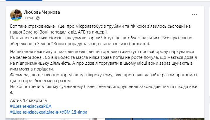 Помните, сколько киосков с шаурмой горели? А тут еще автобус с горючим. Все усилия по сохранению Зеленой Зоны пропадут, если произойдет беда, - отмечает Любовь.