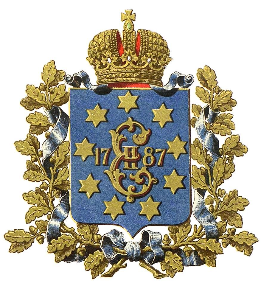 Первый Герб появился у Днепра в 1810-х годах. Это был щит голубого цвета с вензелем и официальной датой основания города на картах. Его окружали шестиконечные звезды и была нарисована корона.