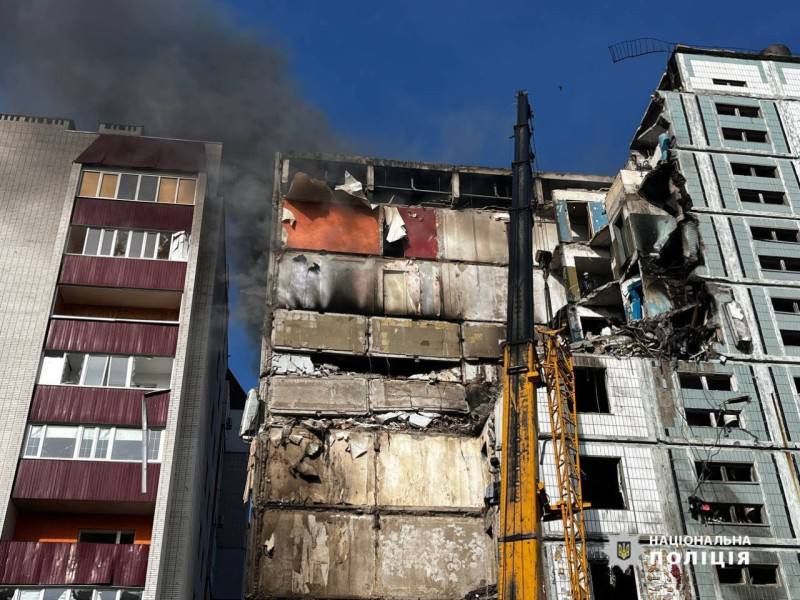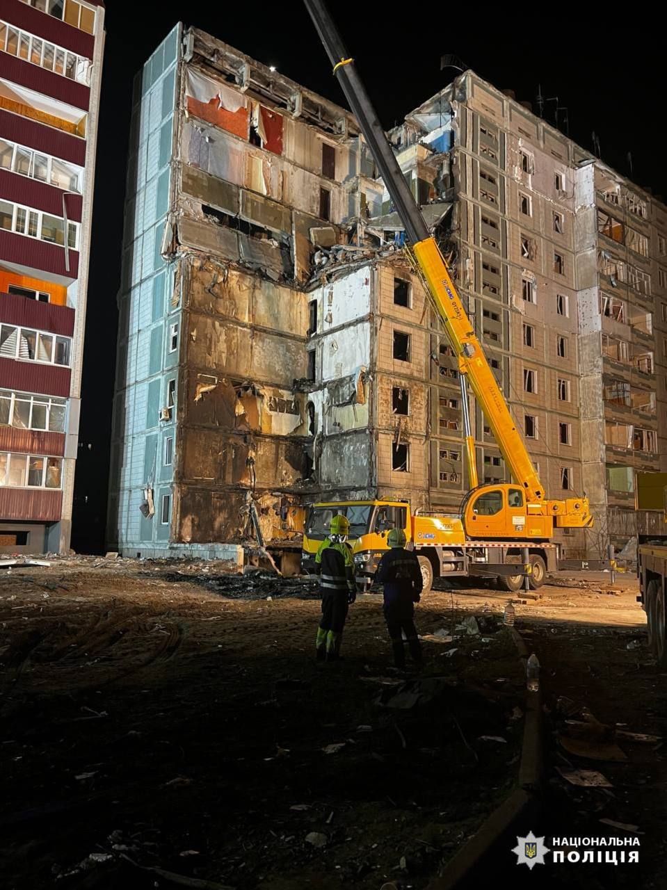 В Умани продолжаются поисково-спасательные работы на месте вчерашнего ракетного удара рф.