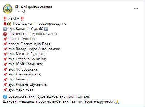 Сегодня многие жители Днепра остались без воды: причина и адреса