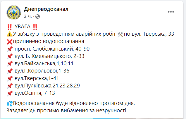 Сегодня, 9 июля, некоторые жители Днепра остались без воды.