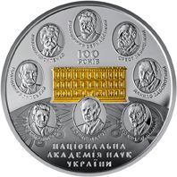На монете изображено здание Президии Национальной академии наук Украины и портреты президентов НАН. Кроме того, есть позолоченные элементы.