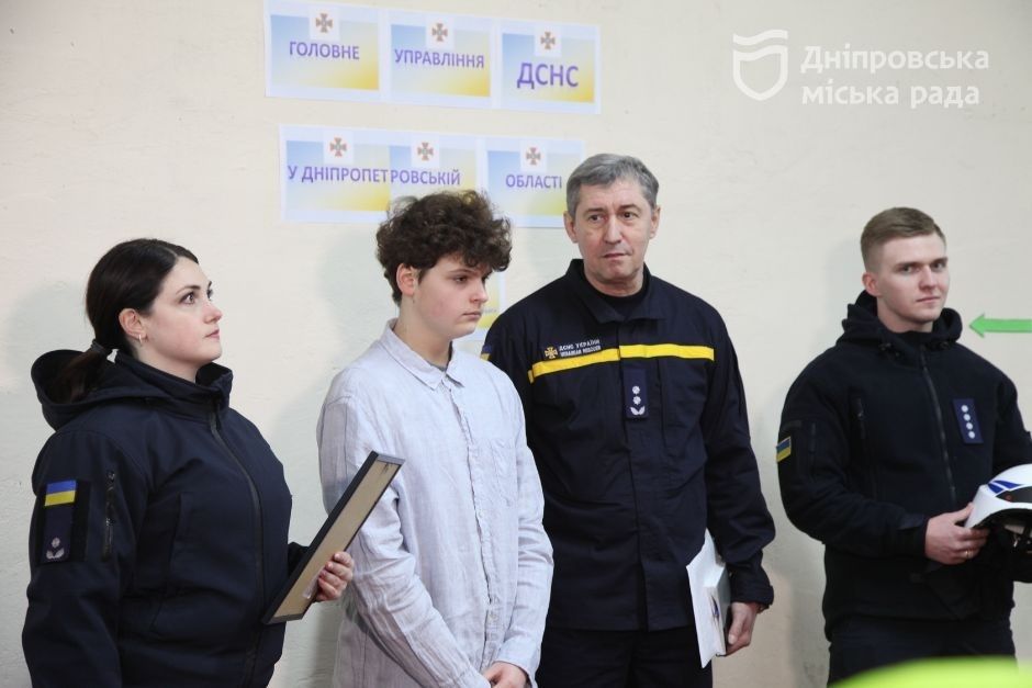 В Днепре наградили школьника, помогавшего разбирать завалы дома на Победе.