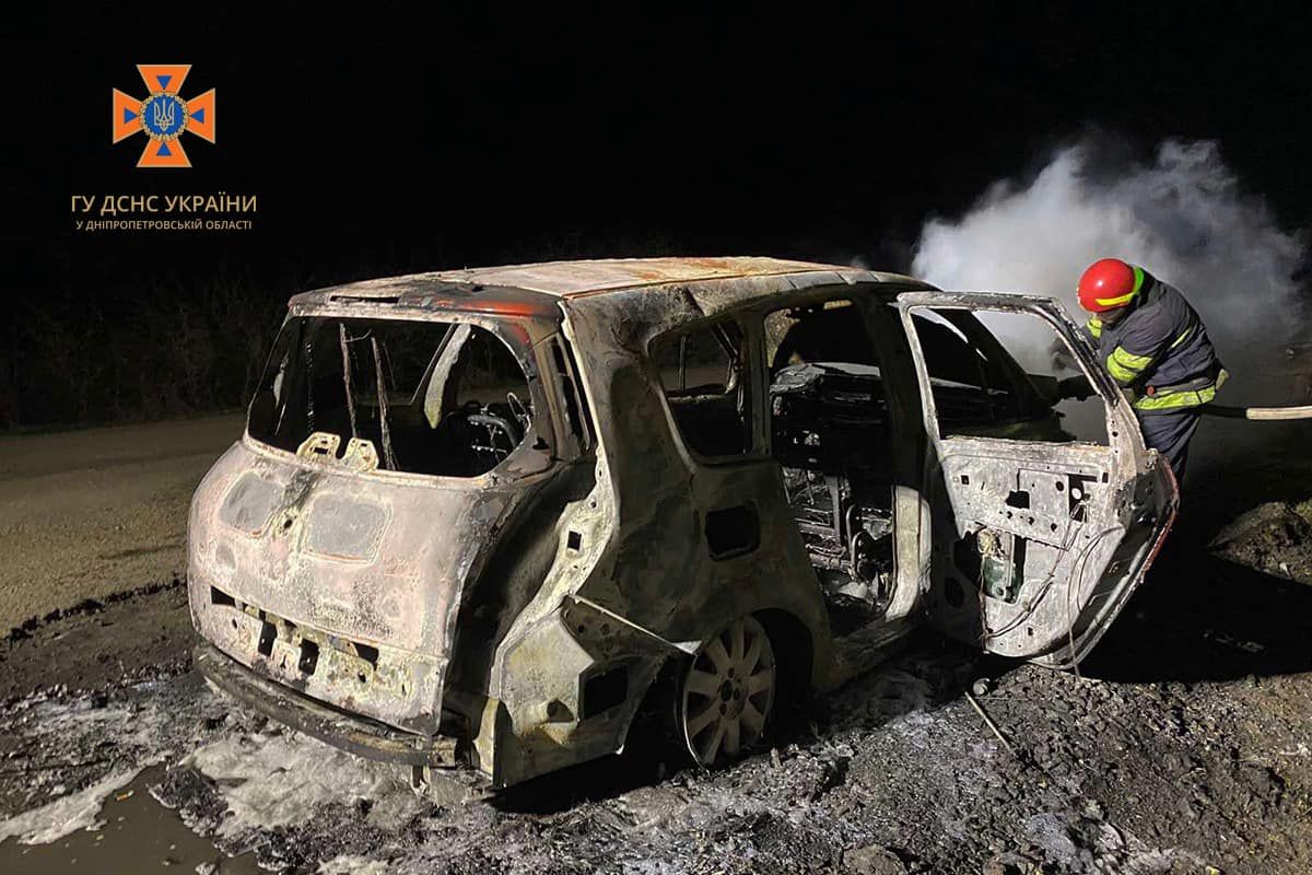 Сгорела дотла: на Днепропетровщине на трассе пылала легковушка