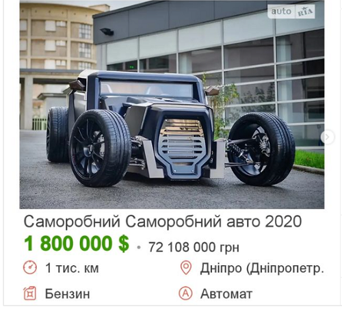 Самую необычную машину в Днепре продают за 1,8 млн дол или 72 млн грн. Авто в единственном экземпляре и сделано вручную. Выглядит довольно необычно.