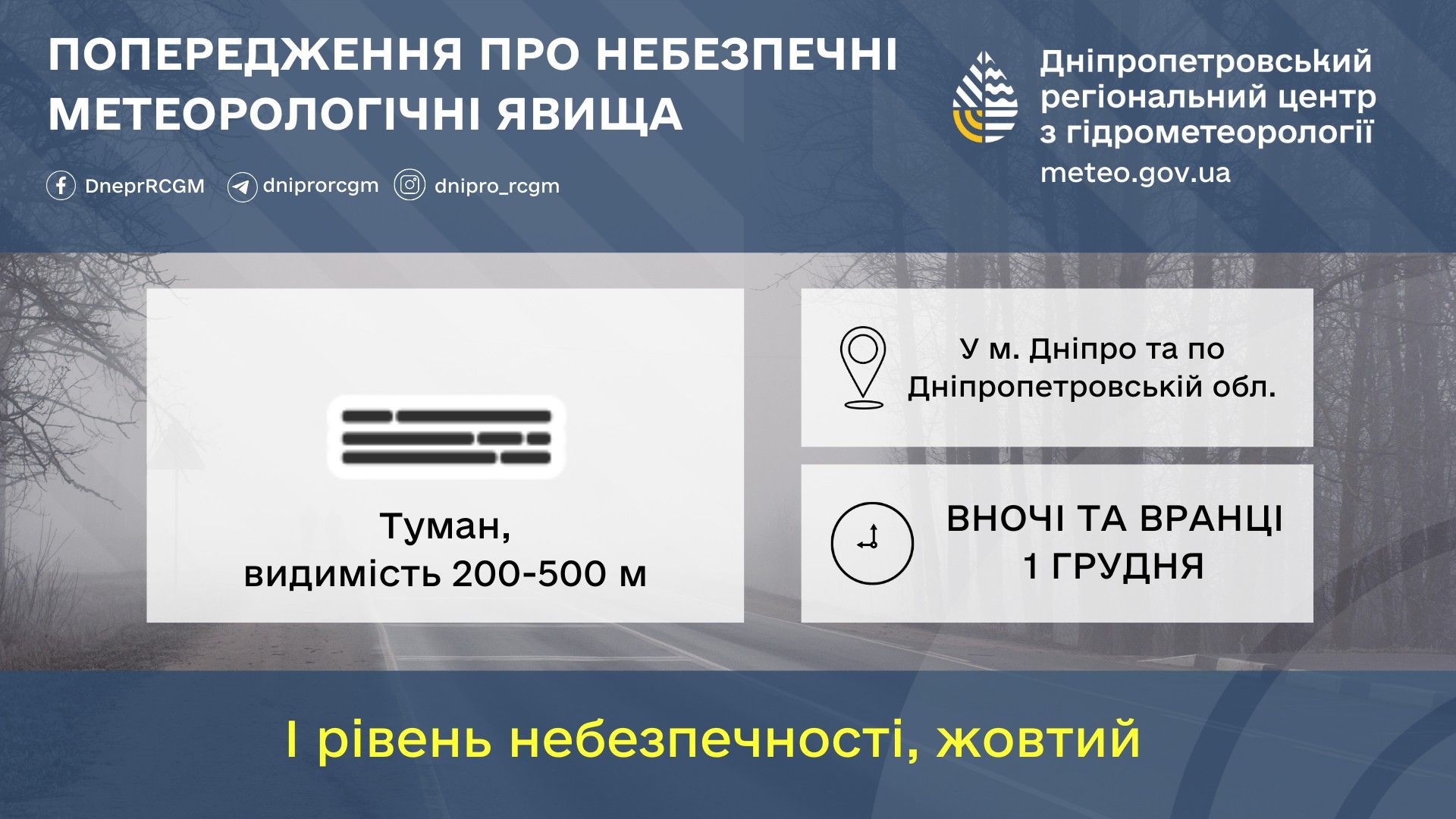 Завтра, 1 декабря, в Днепре и области ожидается опасное метеорологическое явление. Об этом сообщают в Днепропетровском центре гидрометеорологии.