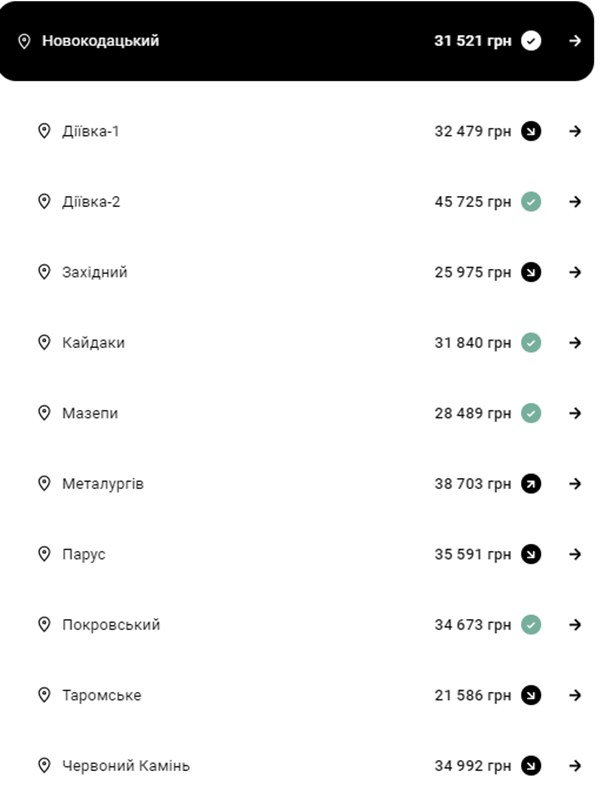 В Новокодацком районе средняя цена на квадратные метры от 31,5 тыс грн. Дешевле всего продаются квартиры на Западном – в среднем просят 25,9 тыс грн за кв м и в районе Таромского – кв м продают от 21,5 тыс грн в среднем. Дороже всего жилье в Диевке-2, стоимость квадратного метра 45,7 тыс грн. Квадратный метр на парусе стоит в среднем 35,9 тыс грн, а на Красном Камне – 34,9 тыс грн.