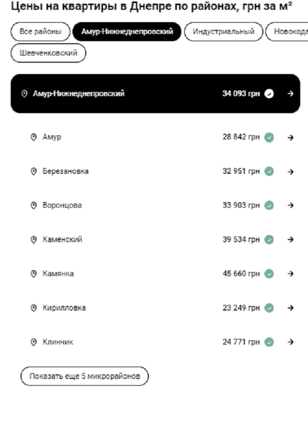 Средние цены на двухкомнатные квартиры в разных районах Днепра: сравнение стоимости (ФОТО)