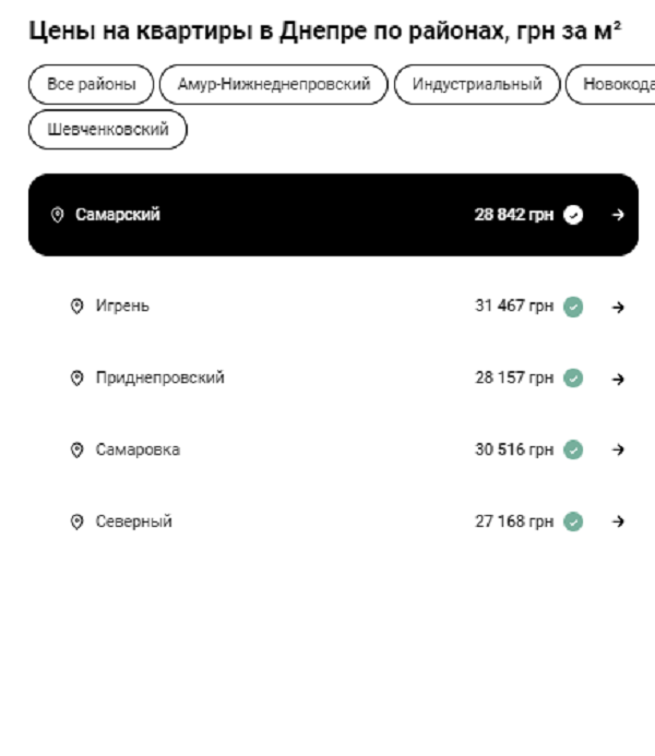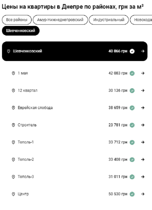 Журналисты dnepr.info решили узнать, какая средняя цена на двухкомнатную квартиру в разных районах Днепра и какова стоимость одного квадратного метра в этих районах.