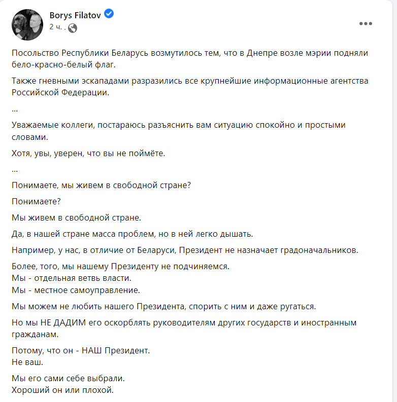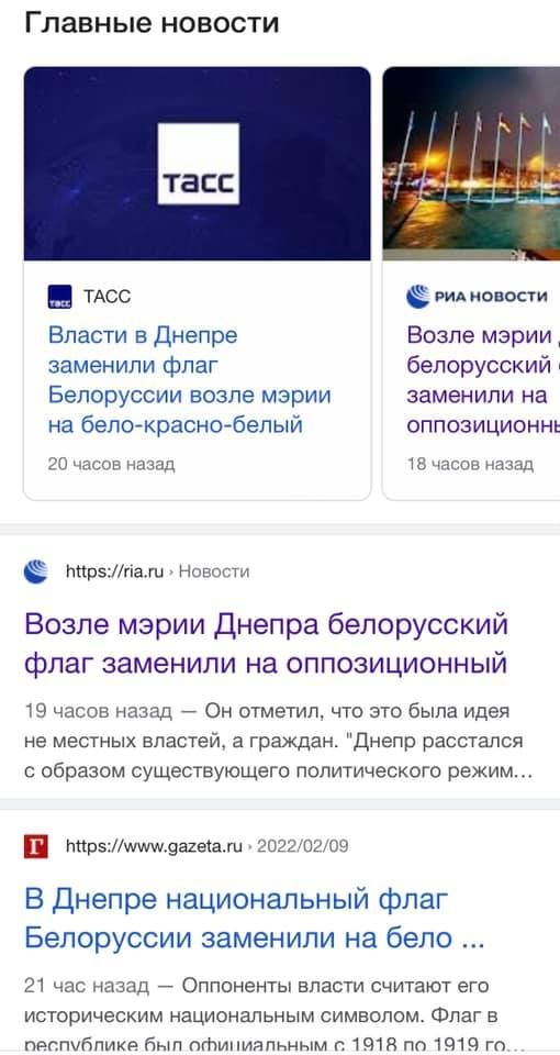 Перед зданием днепровского горсовета флаг Беларуси заменили на народный бело-красно-белый. Это факт не понравился российским и белорусским СМИ, которые начали критиковать такое решение.