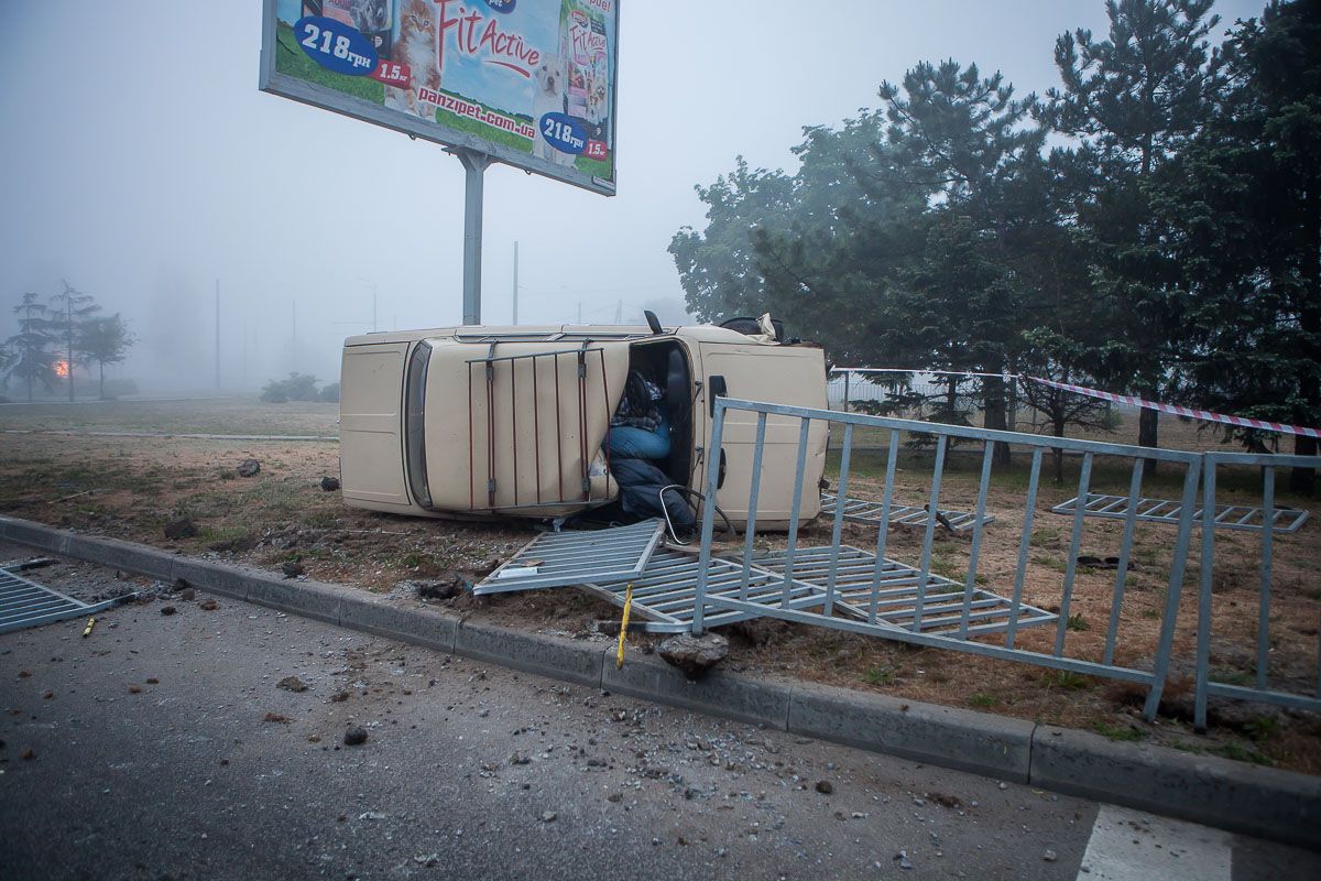 Транспортное средство ВАЗ-2106 по неизвестным причинам съехал с проезжей части и на огромной скорости врезался в околодорожное ограждение. ТС снесло более 5-ти секций забора.