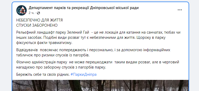 Смертельное катание на санках в Днепре: комментарий представителей парка