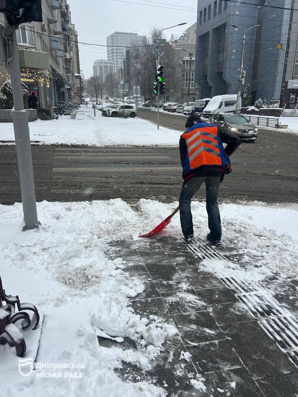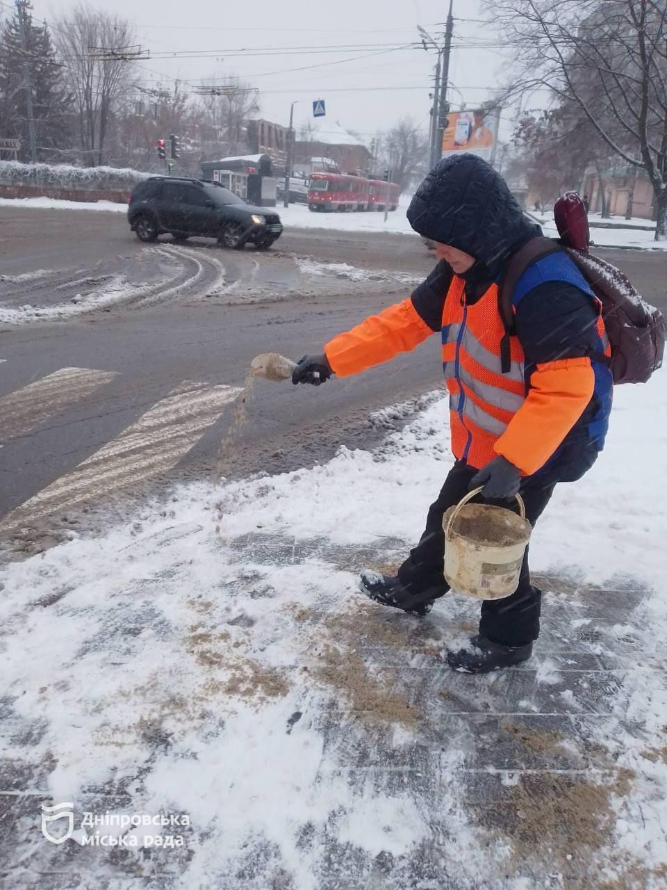 Автодороги расчищают, тротуары и переходы убирают в Днепре.